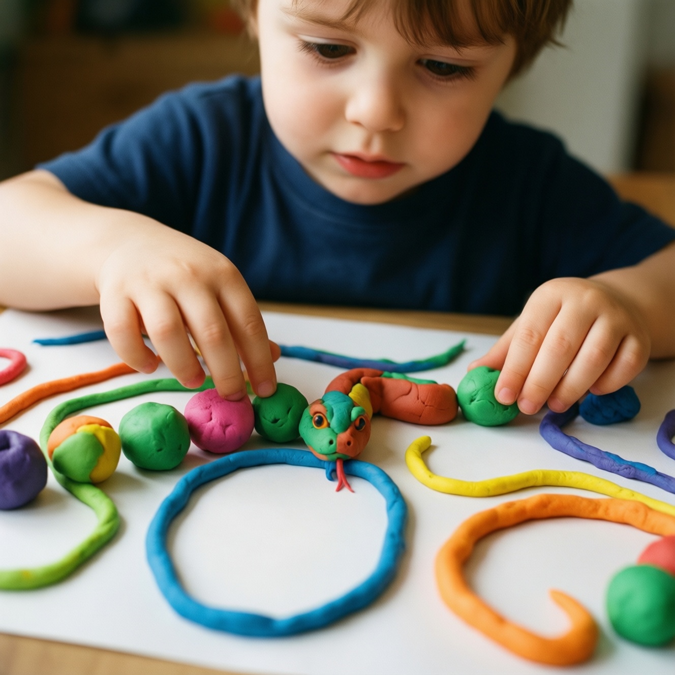 Если пластилин крошится или плохо катается, его стоит хорошо размять в тёплых ладонях и всё равно давать микропорциями. Иногда проще сменить материал на более мягкий - это снижает напряжение в пальцах и делает работу приятнее.